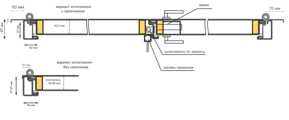 Размеры ворот даны под толщину уплотнителя полотна 60 мм